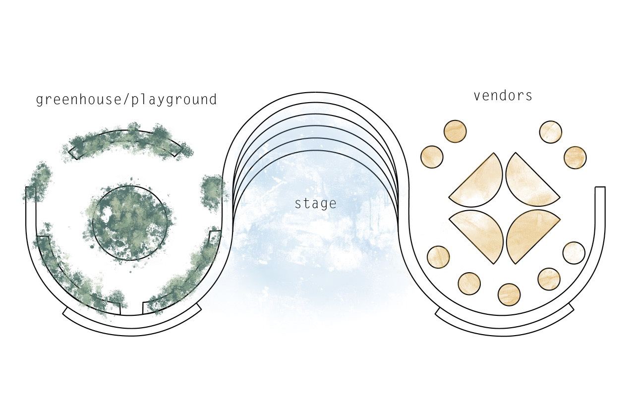 This project is for the Royal Society of Arts Student Design Awards. Our team of six worked to answer Brief 4: Planet Generation. The brief tasked us with creating joyful place-based opportunities for people across generations to improve planetary health. We designed Community Crates, an interactive space meant for parking lots of big box stores that can be changed into different modules including a stage, playground, garden, etc. The space encourages all generations to gather with other community members and complete activities that are good for planetary health.